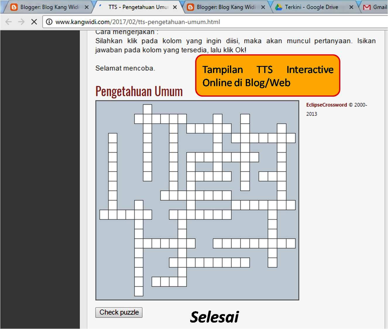 Tutorial - Cara Membuat TTS (Teka-teki Silang) Interaktif Di Blog
